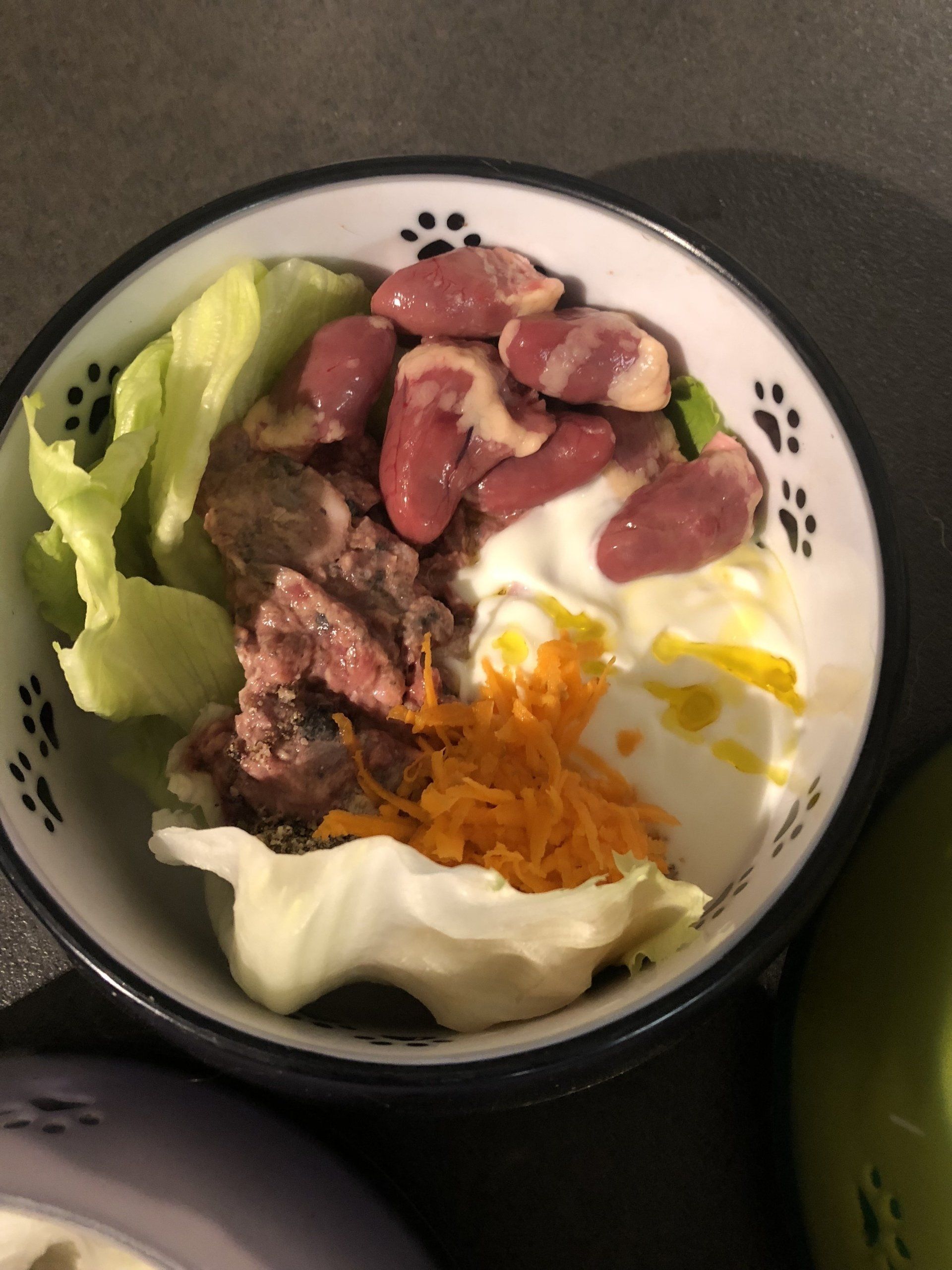 Über die Fütterung von ebenfalls Innereien (Leber,Niere und Milz) in Muskelfleisch