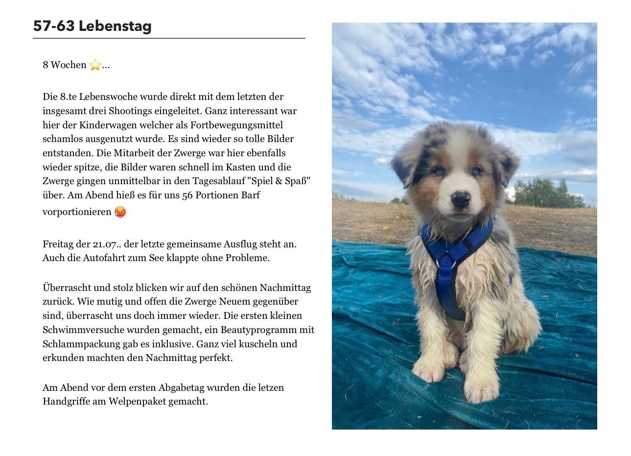 Und hier enden somit 8 bzw. 9 Wochen Welpenzeit mit viel Herzblut, Liebe, Fürsorge aber auch Ängsten, Sorgen und Herzschmerz